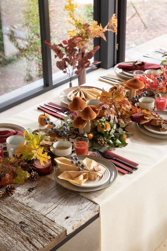 La décoration automnale se pare de couleurs chaudes et enveloppantes, rappelant la beauté des feuilles qui tombent et créant une ambiance douce et réconfortante.